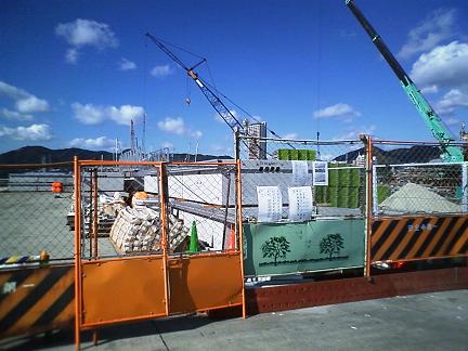 フェンスの向こうには、設置を待つCの浮き桟橋がありました。
