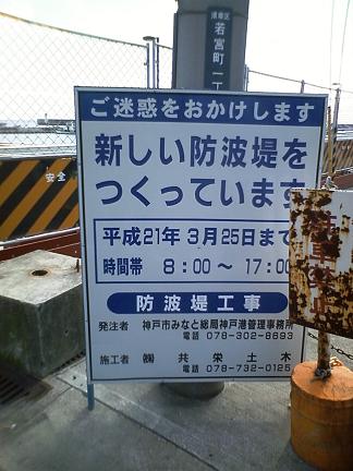 入口には、防波堤増設工事の看板が。