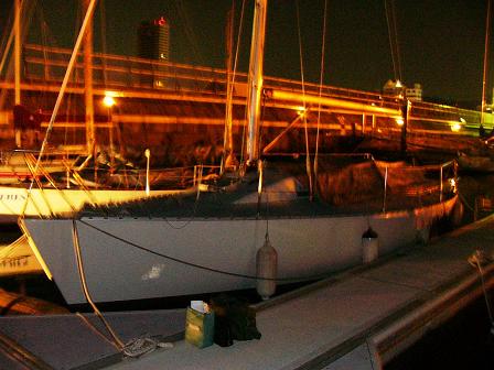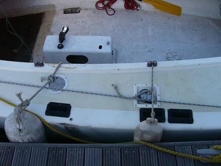 発泡スチロールをバウに取り付け、桟橋中間のクリートにエオラス号のフェンダーを取り付け作業完了です。