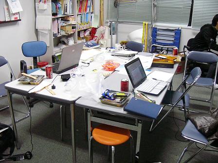 日々、この部屋で進められています。ここ2週間の慌ただしい準備で、家も忘れて住みついている者もいるのだとか。