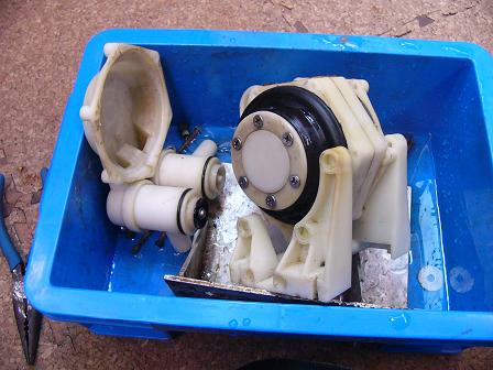 一部プラスチックがかけたり、ゴムのパッキンや弁が劣化しておりました。