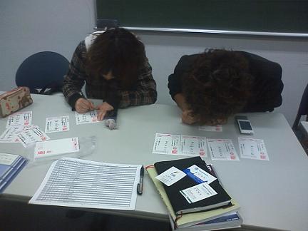 答え合わせと解説を終えた後は、今年お世話になった方々へ年賀状を作成していきました。