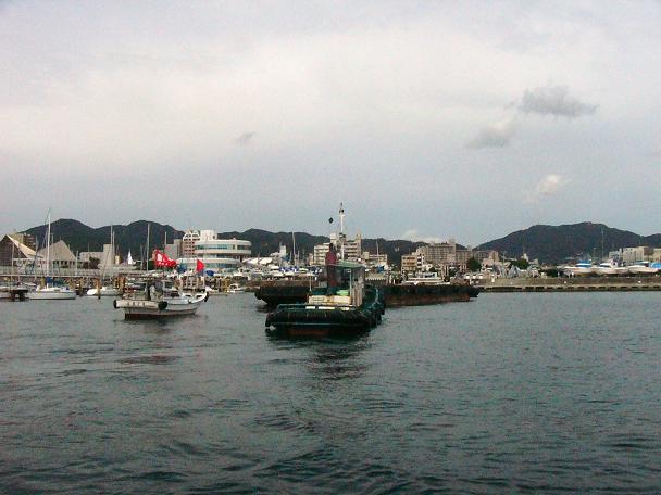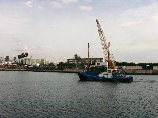 出港時に作業船とすれ違う。