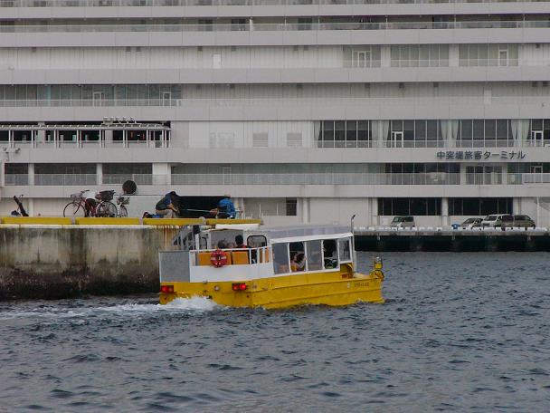近くに水陸両用車のような観光船がゆっくりと走っていました。