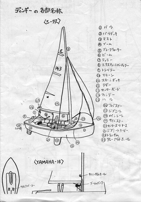 次にディンギーの各部名称を答えていきます。