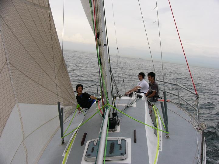 最初は、よくわからず言われているままでしたが、徐々に自分たちでセールを出し入れしながら、トリムの感覚をつかんでいっているようです。