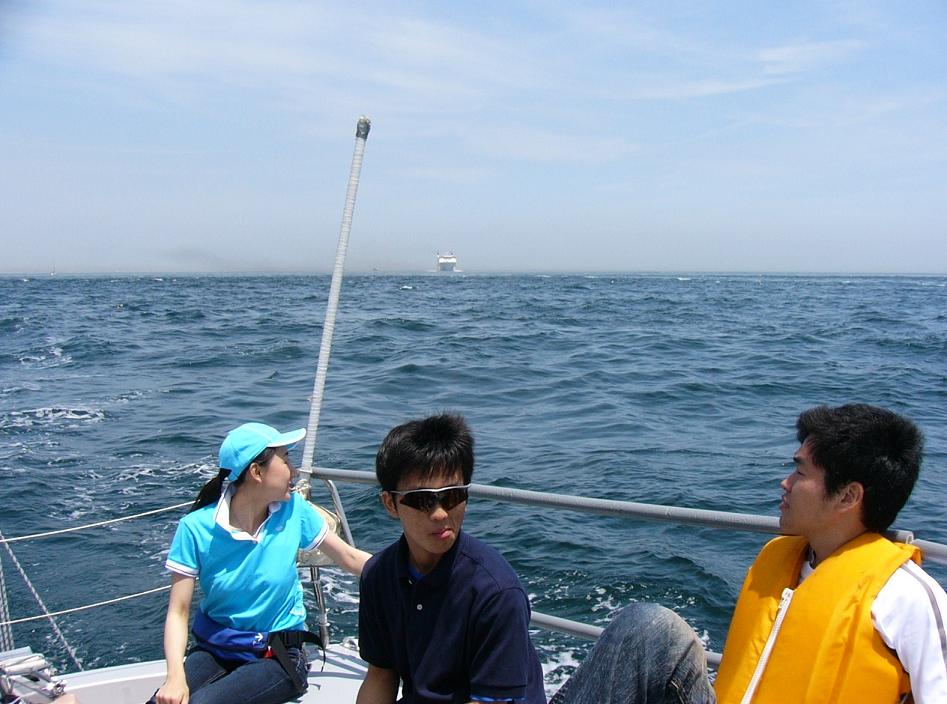 その他、途中でナビを一回生にとってもらったわけですが、3点コンパスで測っては何度も船内に入りチャートワークをしていたため、山川がダウン。船内にいる時間が長かったため仕方ありません。はじめての酔いだったそうです。