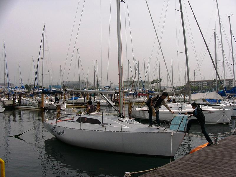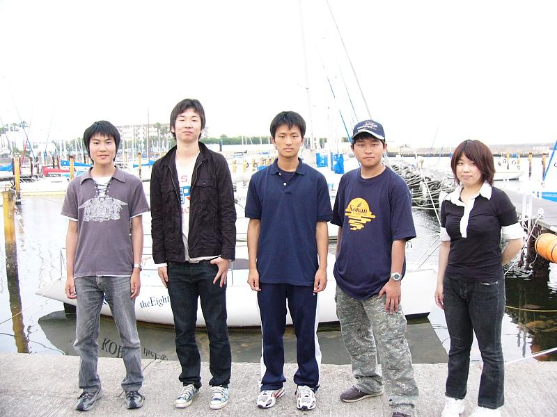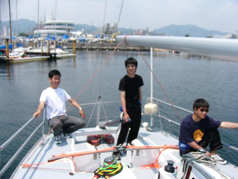 須磨港内で岸壁練習をしていると西宮からヨットが入ってきたのですが、そのヨットは1回生時末が小中学時代に通っていた塾の塾長のヨットでした。5年ぶり?の再会だったようです。