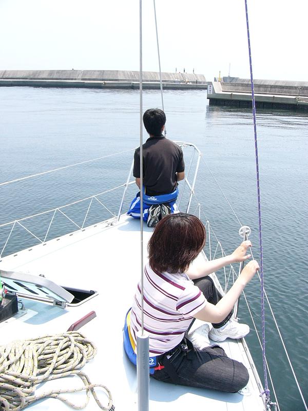 出港は、久々にダブルを使い、舵は山川が持ち、難なく出港クリヤー。
