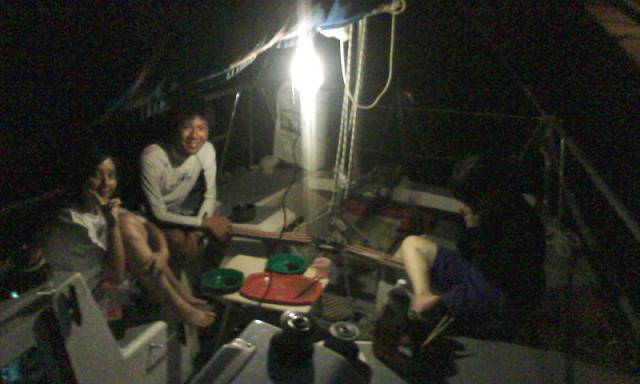 出航時は、近くで12m以上の風が吹いており、スプレーを何度も浴びましたが、すぐに収まりぽかぽか陽気の中順調な航海です。