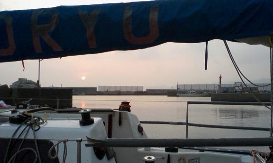 「1日遅れた2009年度夏クル初日は、7時に須磨を出て、11時40分に洲本のサントピアマリーナに着きました。出発した直後は、風が強く波もあったので、艇速が常時6ノットを超えるといった状況でしたが、途中から風が落ち着き、楽しいクルージングになりました。